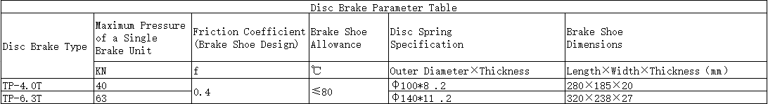 2. Under no-load conditions, the minimum operating pressure of the disc brake piston should not exceed 0.3 MPa.