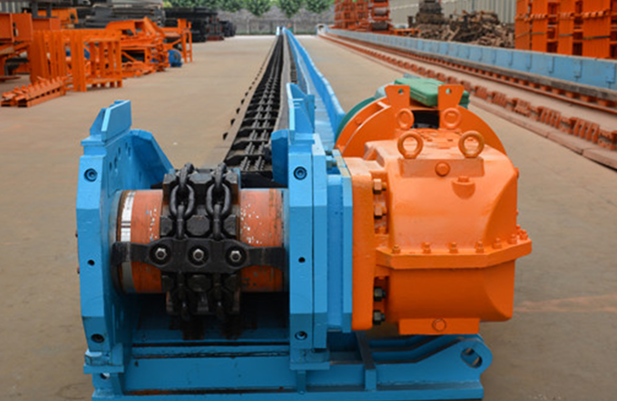 The fully mechanized scraper conveyor is mainly used for transporting coal in working faces such as blasting,general mining, high-grade general mining, fully mechanized mining and top-coal caving in thin coal seams orvery thin coal seams, medium-thick or thick coal seams and gently inclined coal seams in coal mines. lit canalso be used for transportation in heading tunnels and along chute. When equipped with a coal shearer, themiddle trough of the scraper conveyor is also the walking track of the coal shearer.